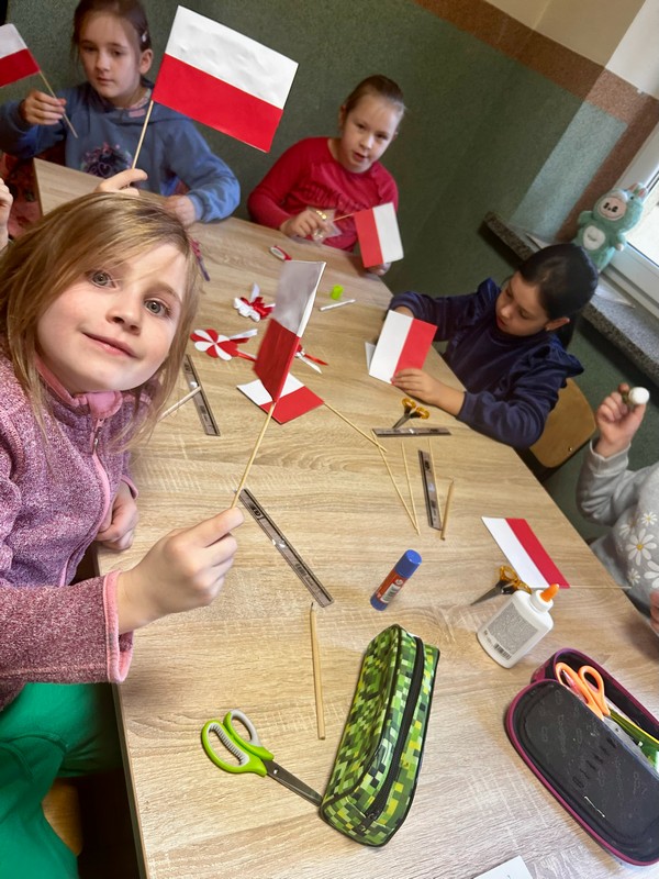 W ramach projektu "Polska w naszych sercach - kreatywne oblicza patriotyzmu" realizowanego przez Fundację Promocji i Rozwoju Gminy Łapanów oraz Centrum Kultury Gminy Łapanów, którego celem jest promowanie polskiej kultury, tradycji i historii, zakończyliśmy warsztaty dla dzieci i młodzieży, podczas których zostały wykonane kotyliony i chorągiewki.