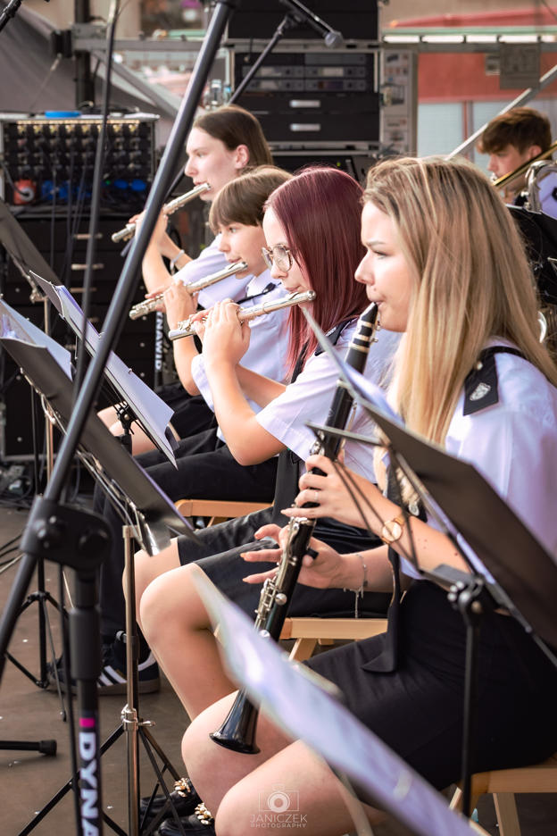 Orkiestra pod dyrygenturą Justyny Chmielek-Korbut oczarowała publiczność brzmieniem instrumentów dętych, prezentując wysoki poziom wykonawczy i muzyczne doświadczenie.